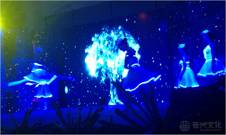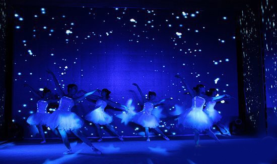 将优雅的芭蕾舞姿与高科技的电光相融合,绚丽的视觉冲击,让芭蕾舞的高贵中增加梦幻的色彩,带给观众一段令人叹为观止的视觉大餐。