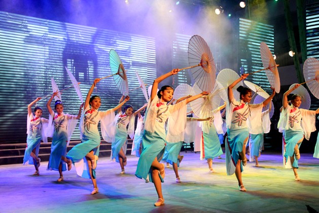 《小城雨巷》不以场面恢弘、火爆著称,而以宁静飘逸、佳人美景为衬托,画面细腻唯美,手撑油纸伞的姑娘们在柔和的灯光掩映下,相仿行走在美景如画的江南水乡,透着灵秀之气、风韵之美,让人在一种静静而舒畅、轻歌曼舞中领略了舞之美。