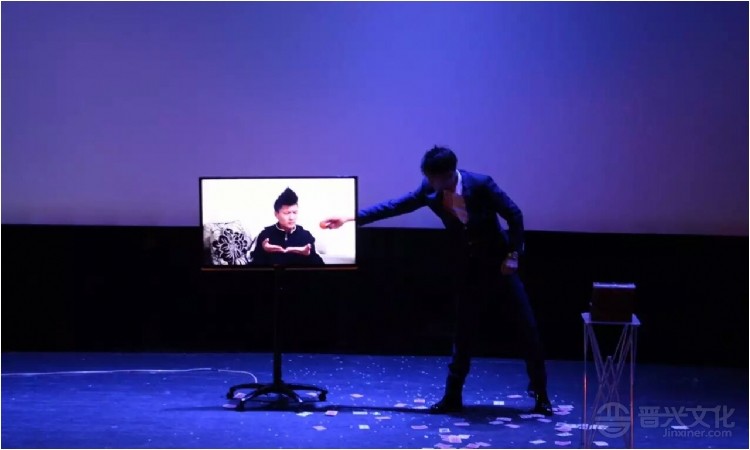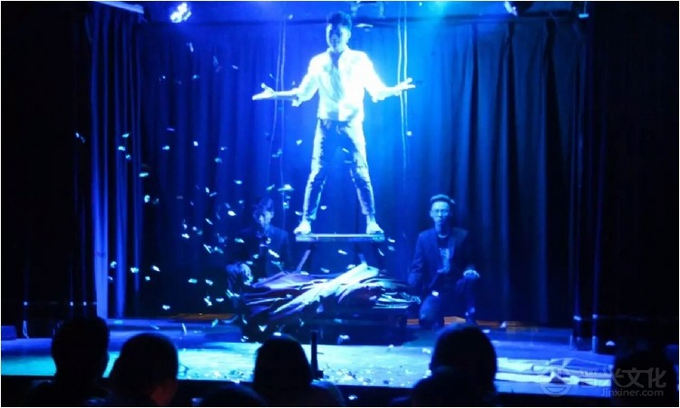 他,结合了LED,TV,iPad, iPhone等高科技产品, 实现了虚拟与现实的3D互动魔术秀;